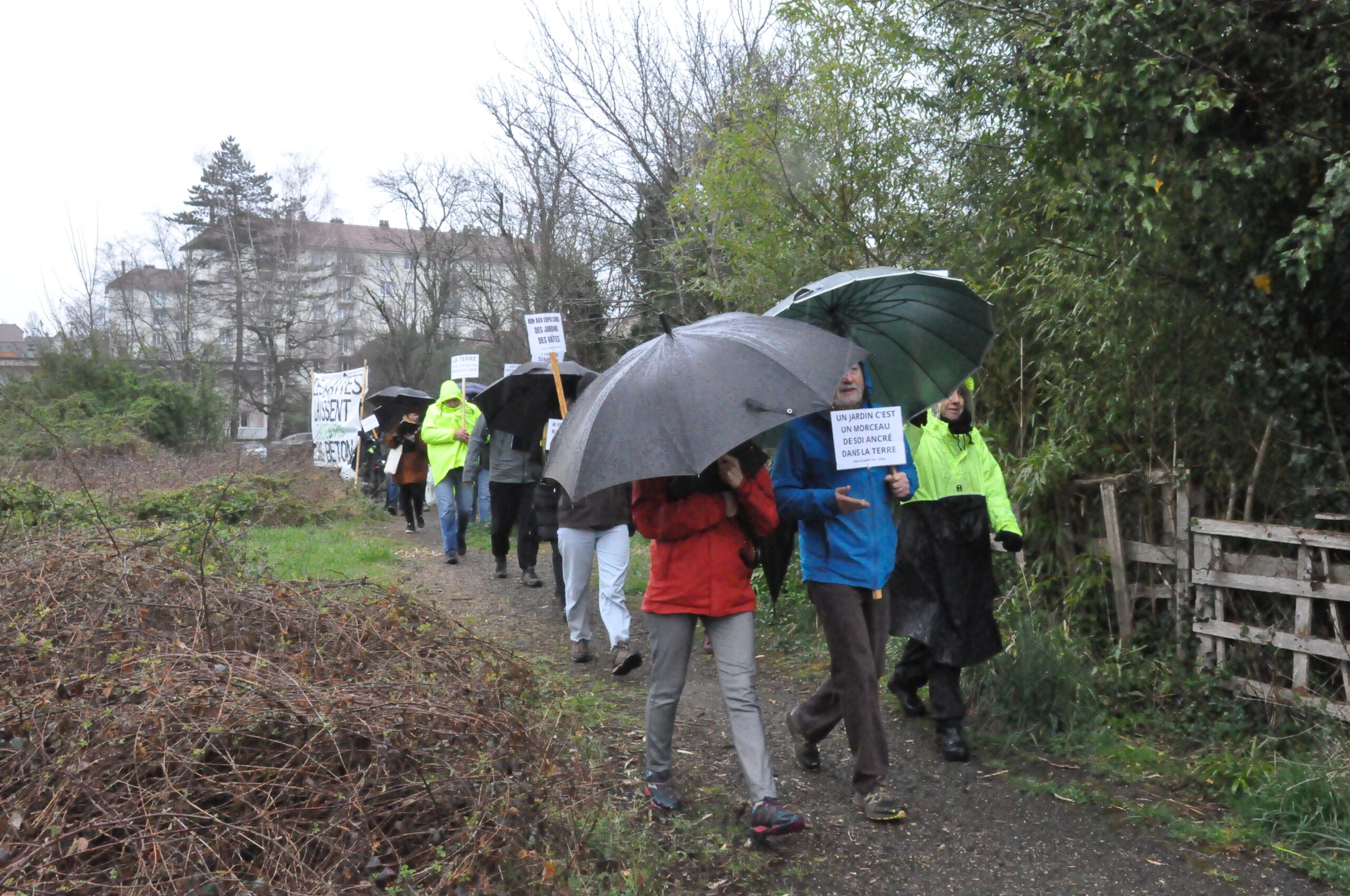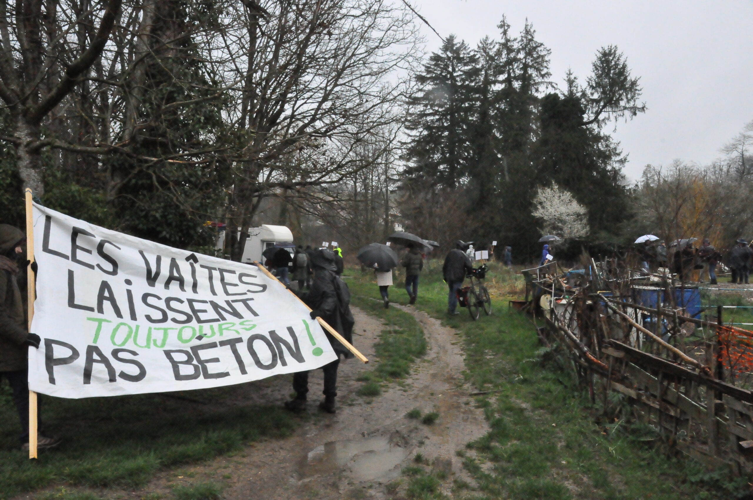 « Malgré un rejet massif et les décisions de justice défavorables, quelques élu·e·s et promoteurs entendent détruire nos parcelles, la biodiversité qu’elles recèlent et l’idée-même de vie que nous portons. Certain·e·s se battent depuis plus de quinze ans, ce n’est pas cette métropole soi-disant écolo qui va nous faire plier. Nous ne laisserons pas faire, cette bétonisation ne se fera pas ! C’est peut-être abrupt pour les salarié·e·s ici dépêché·e·s, d’ailleurs laissé·e·s bien seul·e·s dans ce marasme par leur donneur d’ordre. Mais face à ce simulacre de démocratie, il s’agit de notre dernier recours afin d’être entendu·e·s ! » rappelait notamment Claire Arnoux pour l’association « Jardins des Vaîtes », encouragée à travers des chants comme « des légumes, pas du bitume ». Avant de suivre l’exposé municipal, que d’autres ont volontiers transformé en plaidoyer maraîcher.