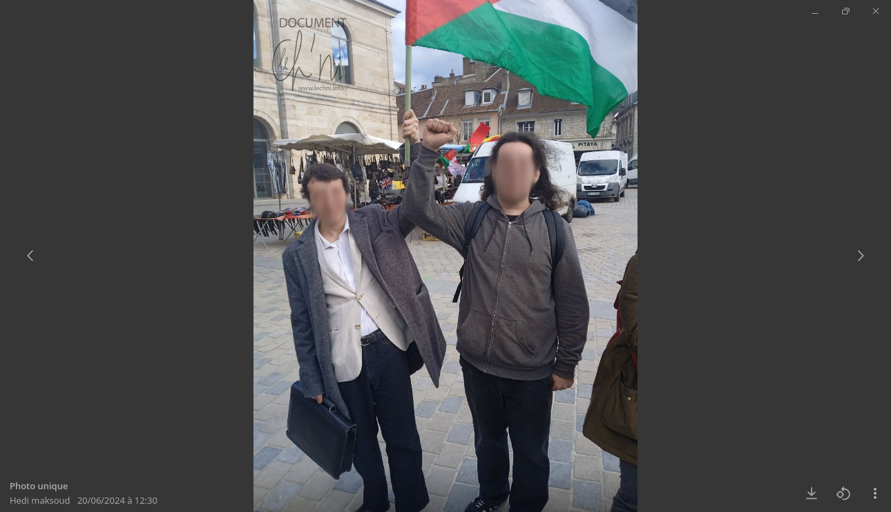 Déploiement d’une banderole au slogan « Frexit pour la Paix » repris « des Patriotes » le 1er mai au sein du « collectif Palestine », tentative d’imposer un ami accusé de harcèlement sexuel lors d’un repas libertaire, port d’une gazeuse pendant des rassemblements… Ces derniers mois, Hedi Maksoud s’est illustré dans de multiples mobilisations locales. Sans oublier les dates liées au sort de Gaza, y multipliant les discours, via la sono de « SUD/Solidaires » ou son propre porte-voix, le samedi, toujours auprès du « collectif Palestine », émanation de « Palestine Amitié », ici pour glorifier le criminel de guerre Ismaël Haniyeh, là pour dénoncer un trafic d’organes nécessaires à Israël pour des raisons « culturelles ». Chez les antifascistes, des témoins ont également pointé ses proximités avec l’extrême droite, en 2022-2023, au moment où la « Cocarde Étudiante » et les « Vandal Besak » perpétraient des commandos. Une liste de reproches, bien connue à Besançon.