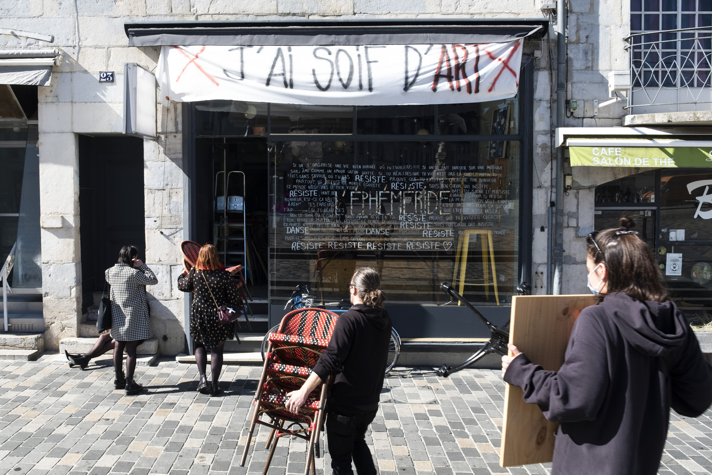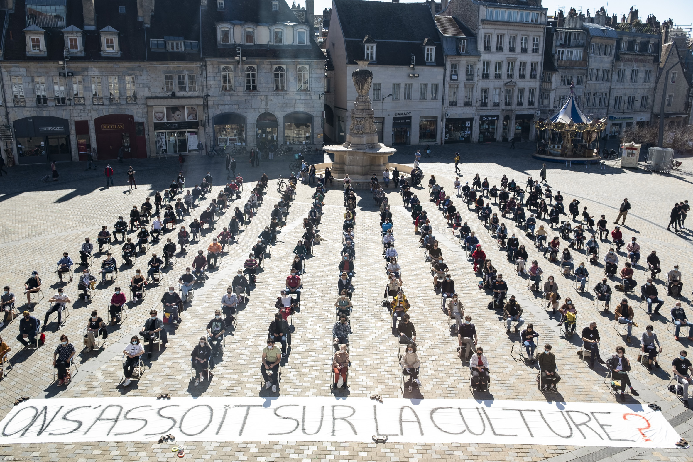 Au son de la devenue célèbre chanson « Danser encore » d’HK, le Centre Dramatique National (CDN) avait rapidement été investi par de très nombreuses personnes du milieu de la culture bisontin et de là, de multiples actions militantes s’étaient mises en place pour demander la réouverture des lieux culturels et dire à quel point il était vital que ces lieux puissent à nouveau accueillir du public après une année de pandémie.