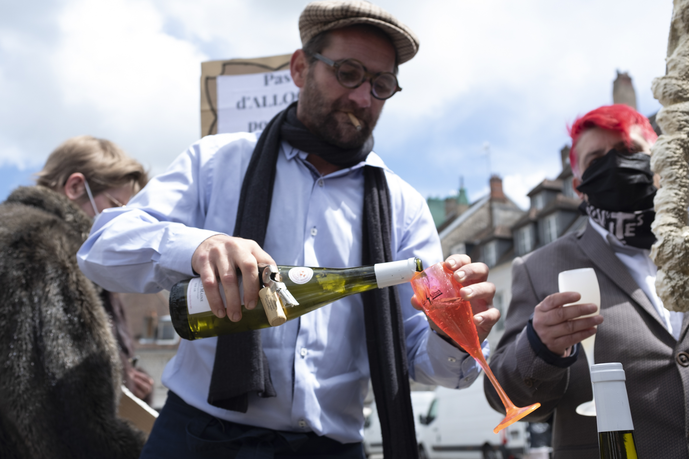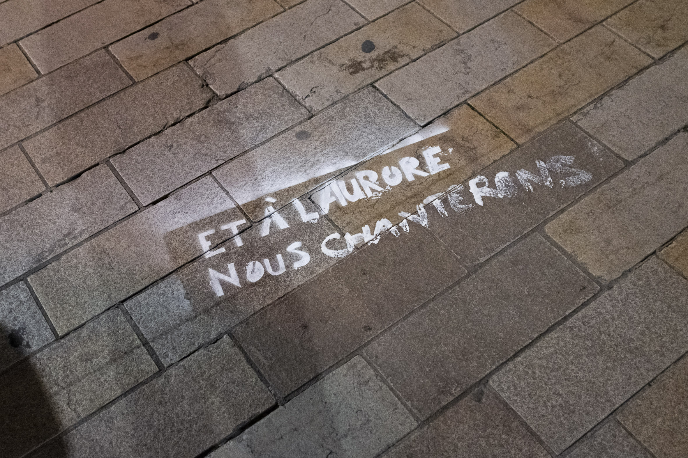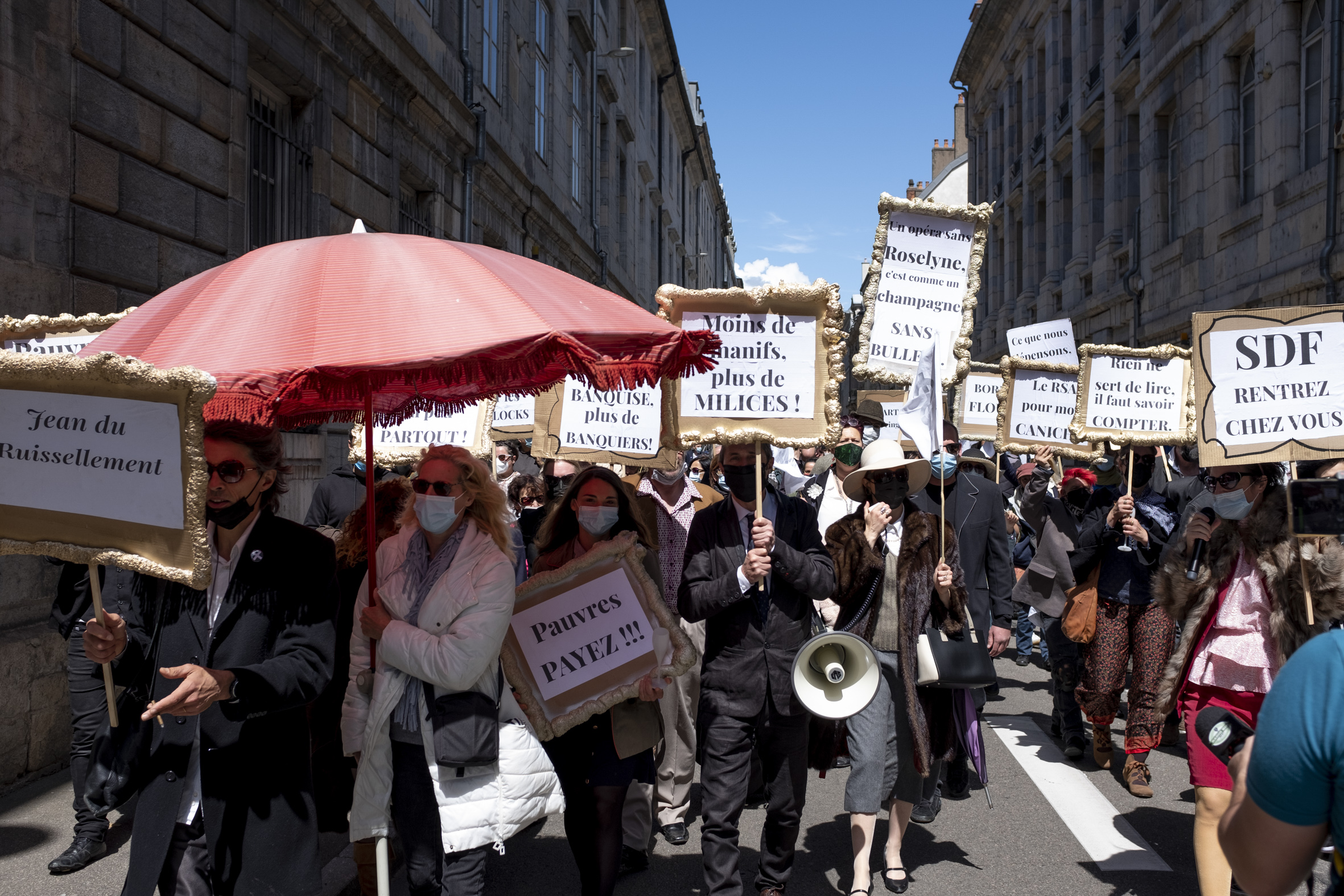 À la suite d’un premier acte, des artistes s’étaient réunis à 4h30 à la « friche artistique » avant de prendre la direction du centre-ville pour réaliser leur prestation avant le lever du soleil, pour « enterrer la culture d’avant le covid et croire en un avenir meilleur »