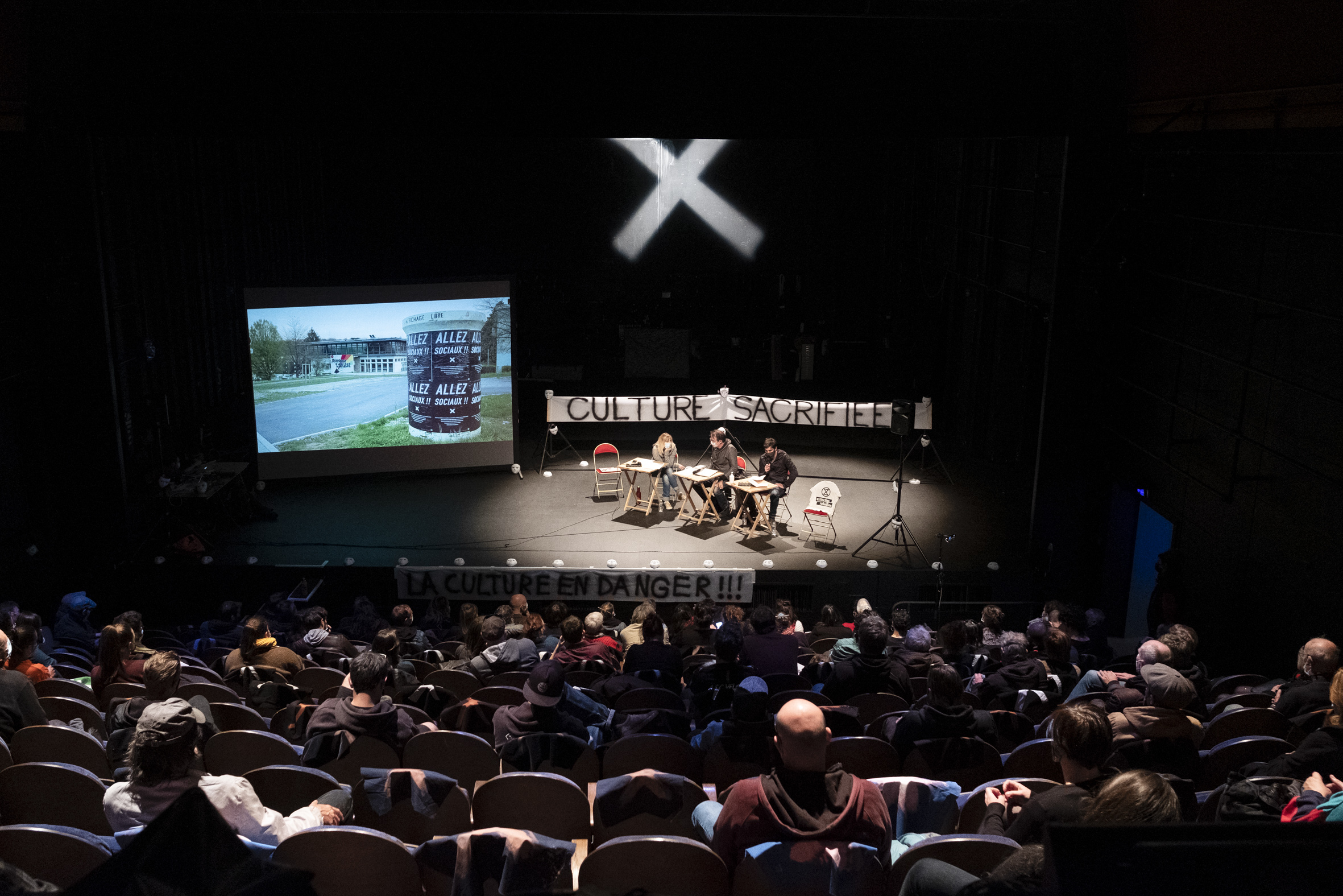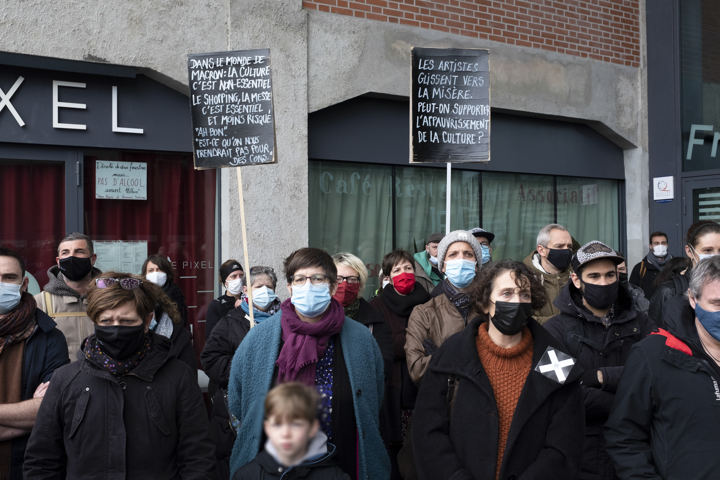 Le 14 mars 2021, un rassemblement festif et revendicatif était organisé sur l’esplanade du FRAC pour dénoncer la précarisation des acteur·rices du milieu culturel face aux restrictions sanitaires et à la fermeture des lieux d’échanges, culturels et de spectacles et dénoncer le manque de mesures prises par les pouvoirs publics pour permettre à ce milieu de survivre face à la crise.