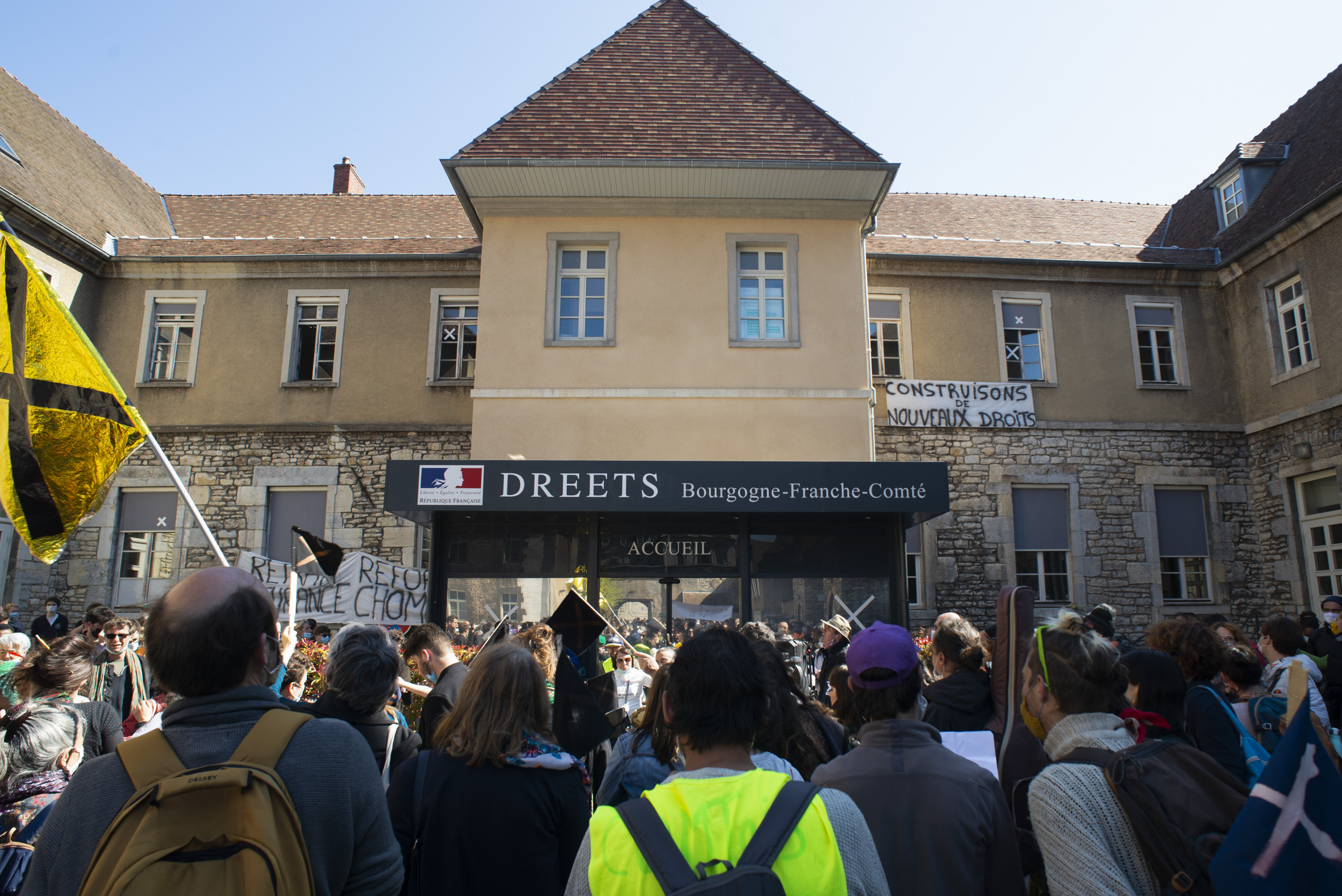 Le 23 avril 2021, plusieurs dizaines de militant·e·s s’étaient introduit·e·s dans les locaux des Directions régionales de l’économie, de l’emploi, du travail et des solidarités (DREETS), afin d’obtenir un rendez-vous avec la direction de la structure pour faire valoir leurs revendications.