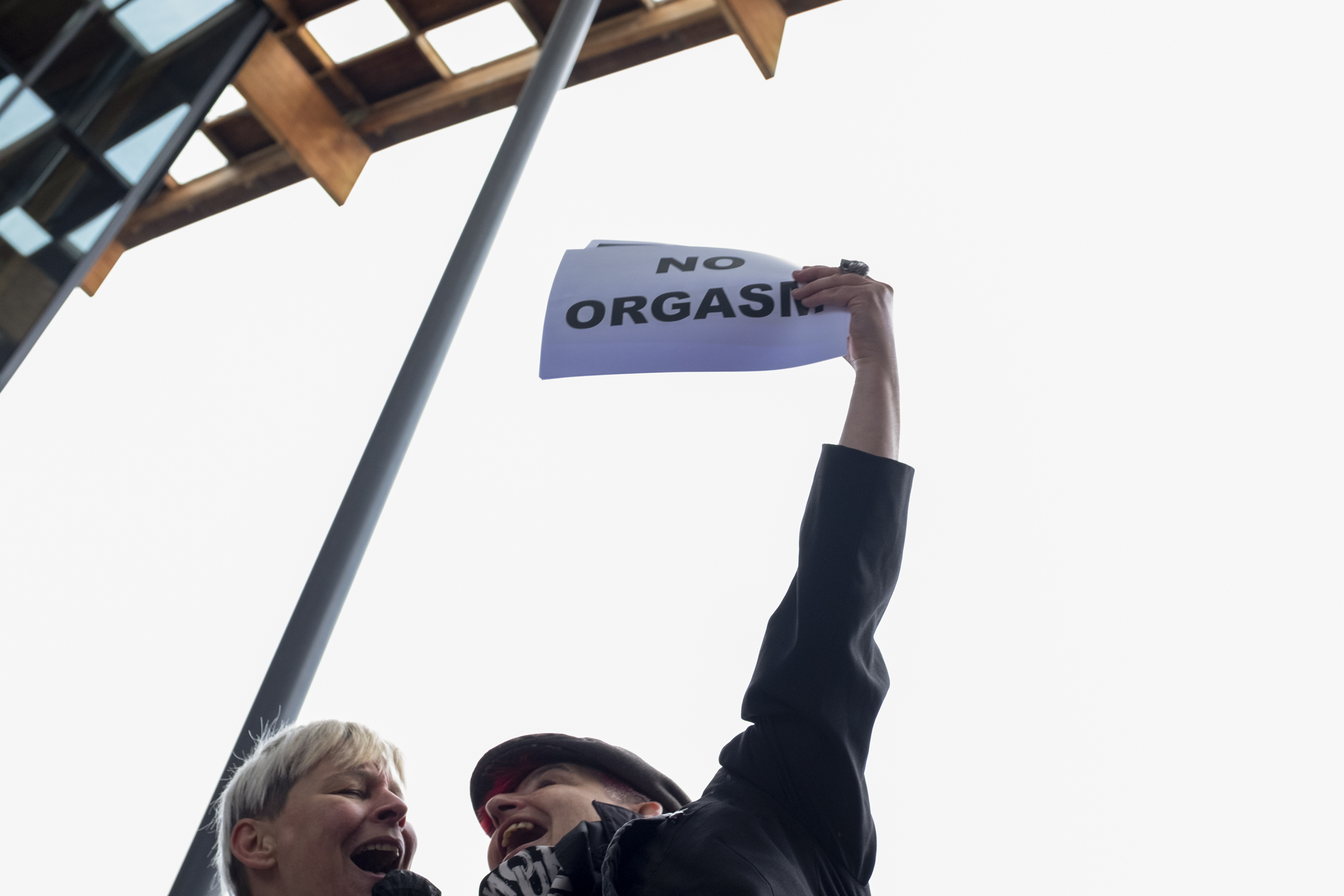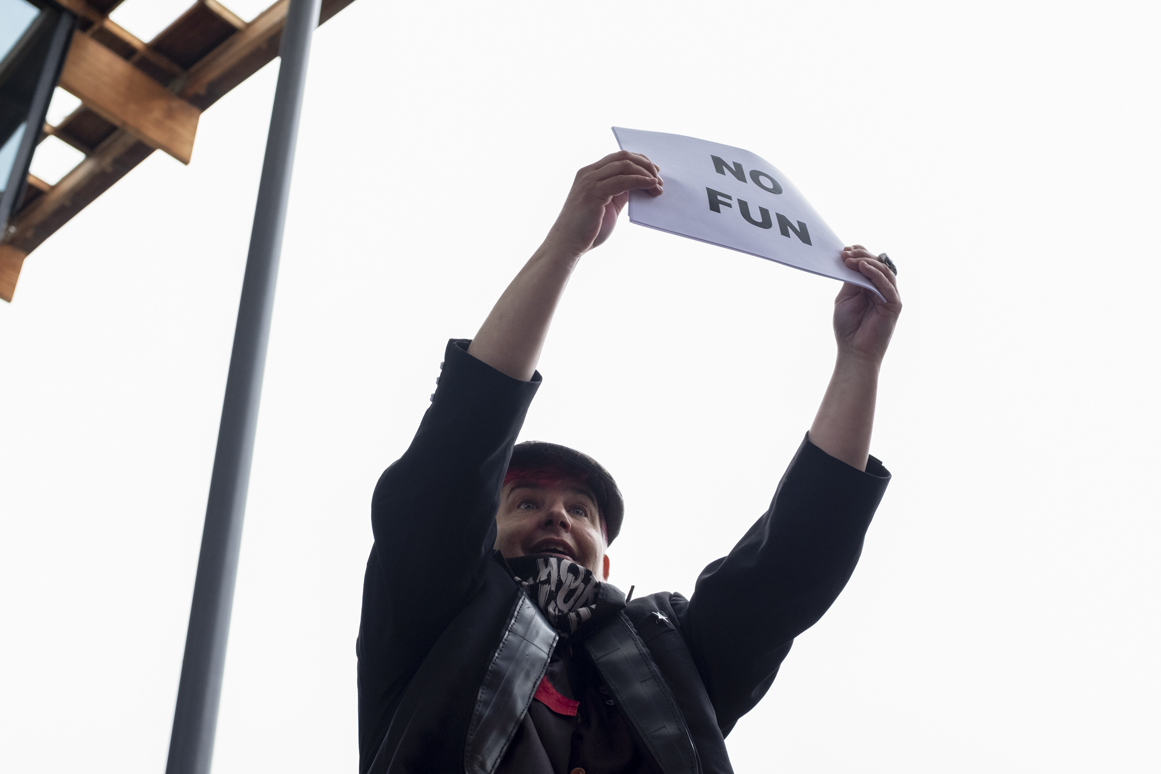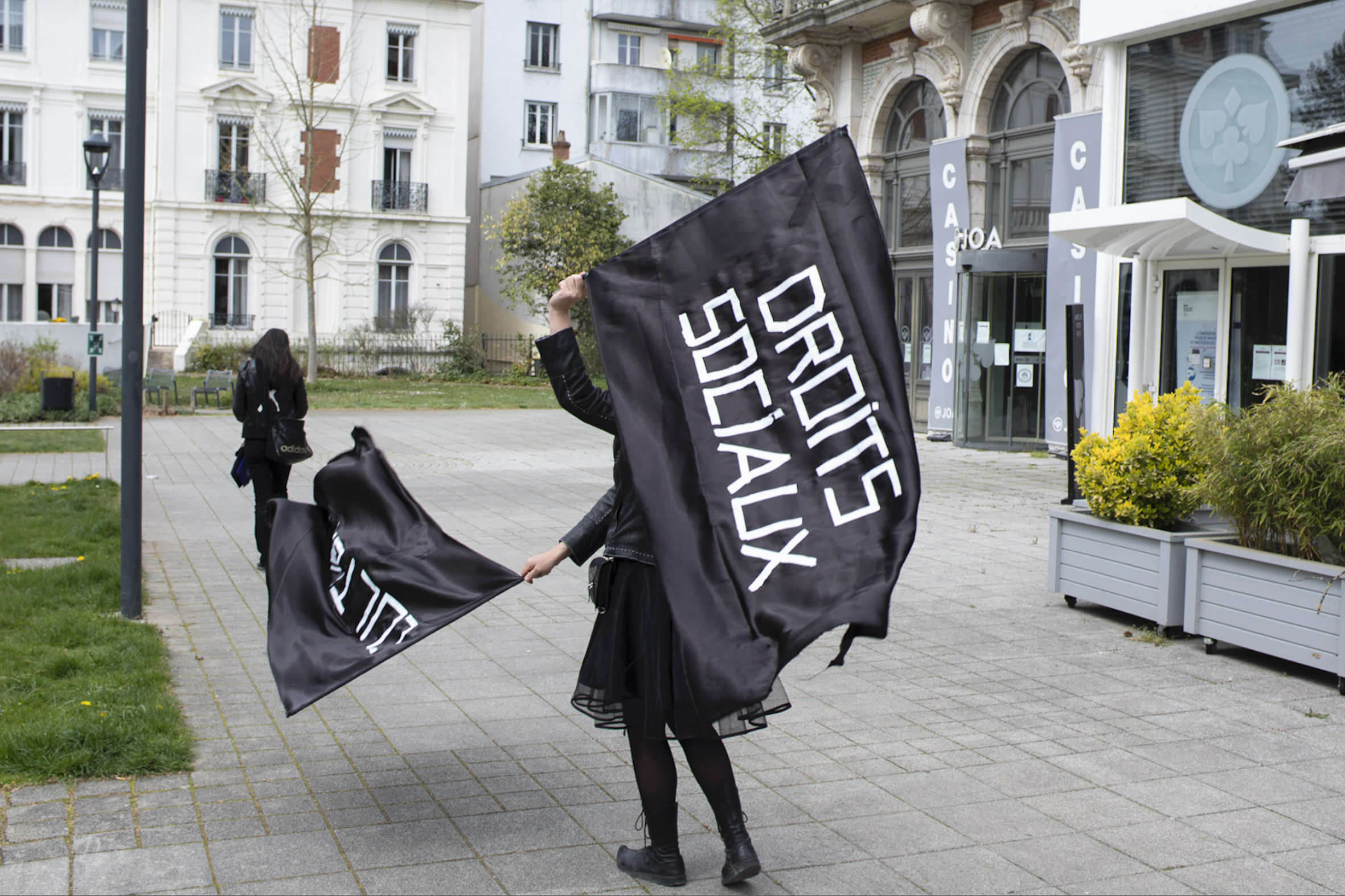 Une action express place de la Révolution pour montrer en pratique les futures restrictions sanitaires imposées par le gouvernement de l’époque, et refléter l’impossibilité pour elleux d’évoluer sous ces restrictions.
