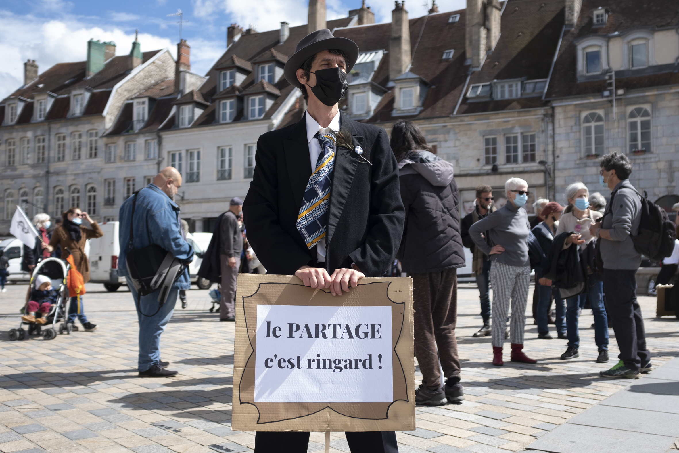 Illustration d’en-tête : mobilisation festive et revendicative du milieu culturel bisontin, le 14 mars 2021, sur l’esplanade du FRAC.