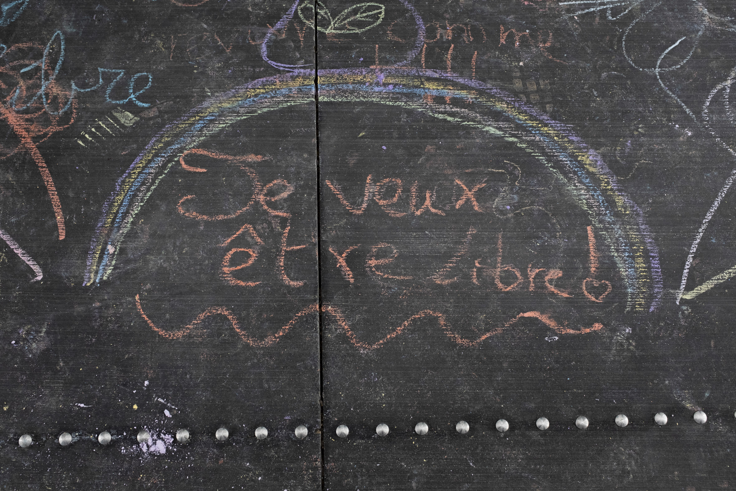 Apparition d’une œuvre géante en face de la Cité des arts sur le mur d’expression libre, avenue Arthur Gaulard : « LA CULTURE AU PIED DU MUR ».