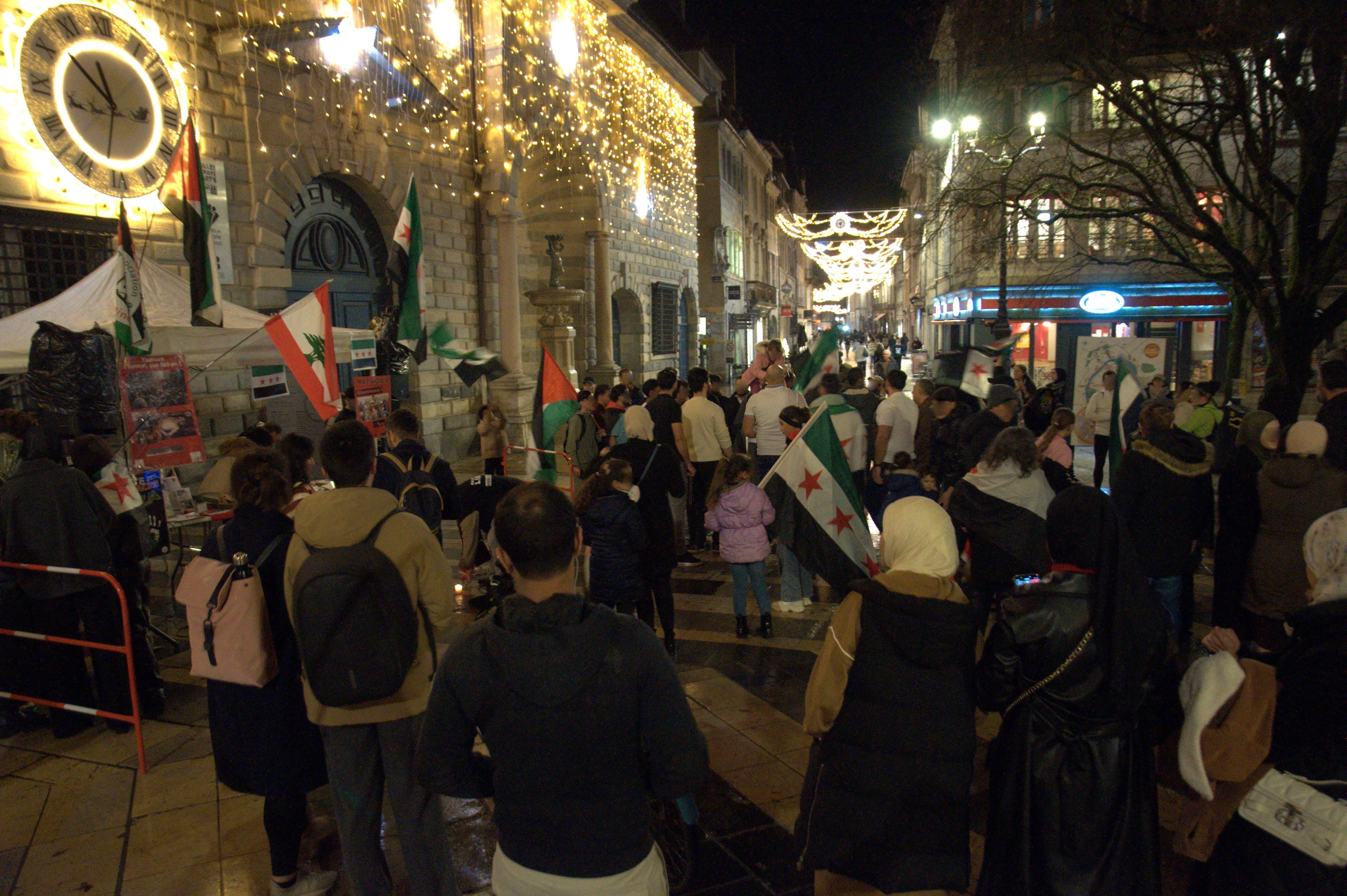 Hier soir place du Huit-Septembre 1944, un rassemblement était organisé à l’appel de « l’Association France-Palestine Solidarité » (AFPS), de « l’Association Syrienne Jasmin » et de « Solidarité avec le Peuple Syrien ! ». Une mobilisation visant à célébrer les un an de la chute de Bachar el-Assad, dictateur tombé après plus d’une décennie d’une effroyable guerre civile dans la région. « Je suis réfugiée ici, en France. Vu l’ampleur des massacres, je n’aurais jamais cru que cette nouvelle parvienne de mon vivant. Mais c’est arrivé, même si on peine encore à le rendre tangible ! Tout n’est pas réglé, mais nous pouvons commencer à espérer. Ce pays va enfin devenir celui de ses habitant·e·s, non la possession d’une dynastie sanguinaire » exposait une manifestante.