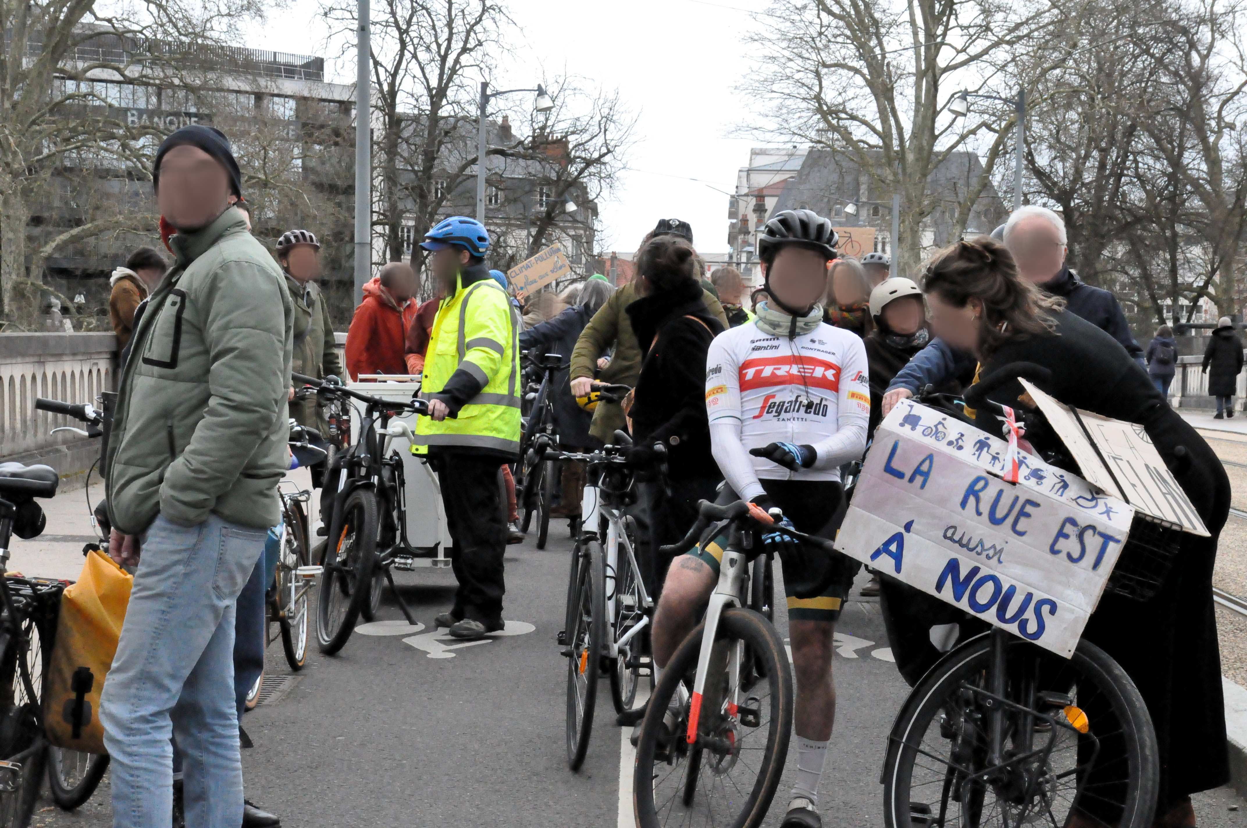 C’est sur un axe emblématique qu’ielles se sont réuni·e·s ce samedi, pour une manifestation un peu particulière. Près de deux cents vélos, tricycles et autres attelages ont en effet pris place pont de la République, occupant la piste sécurisée de toutes les controverses. Un aménagement opéré sous le mandat d’Anne Vignot, critiqué par la droite et le centre qui y voient le symbole d’une politique « verte » au détriment d’un « tout-voiture » qui reste la norme dans ce camp. L’occasion pour les protestataires, la plupart craignant que la ville ne bascule dans cette vision aux prochaines échéances municipales, de rappeler qu’il existe un réel attachement de la population aux transports individuels et collectifs doux, souhaitant maintenir le concours des pouvoirs publics en ce sens.