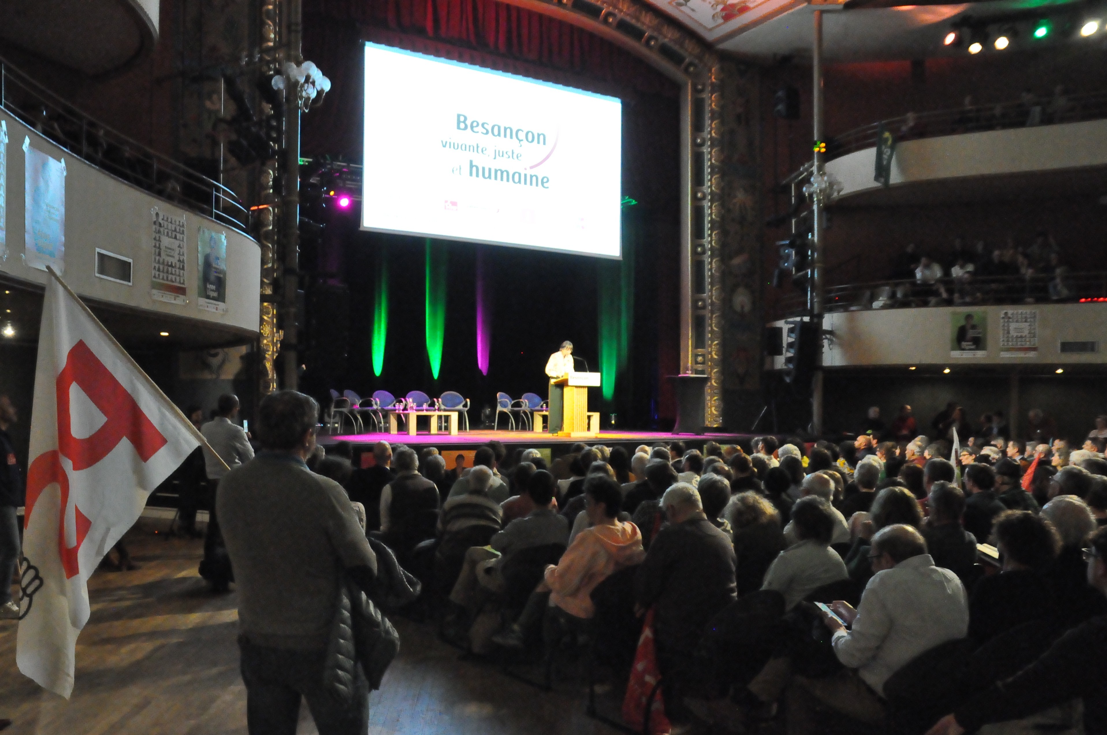 Il y avait la foule des grands jours ce mardi soir au kursaal de Besançon, où toute la sociale-démocratie comtoise s’était retrouvée pour cette date fatidique de la campagne électorale des municipales. Malgré les têtes d’affiche parfois surannées et une salle en partie bien chargée par les armadas de militant·e·s, Anne Vignot et ses équipes semblent avoir réussi leur pari : redynamiser les troupes, convaincre au-delà des seul·e·s inconditionnel·le·s, imprimer une incarnation du « vote utile » dès le premier tour. Une réussite de l’instant qui n’évite pas un écueil majeur, celui de la (non) alliance avec « la France Insoumise ». Car pour celle qui veut figurer au mieux « l’union de la gauche et des écologistes », il faudra probablement davantage qu’un événementiel garni pour préserver son mandat face à Ludovic Fagaut.
